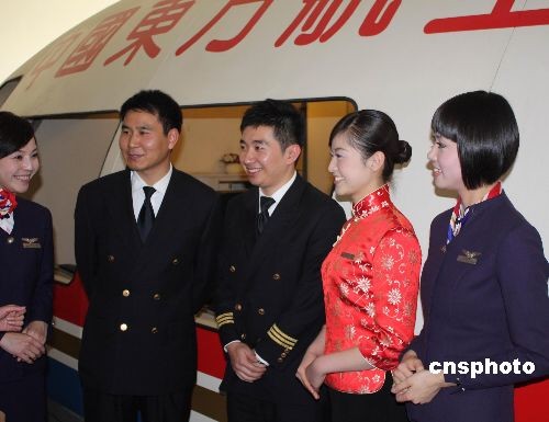 12月12日,东航执飞大陆首班“截弯取直”常态包机机组亮相。航路的“截弯取直”将使航程和时间大大缩短,以上海和南京为例,东航两岸常态包机将比原有周末包机节省70-80分钟。据悉,12月15日,航班号为MU2075的东航空客A321飞机将从上海浦东机场起飞前往台北桃园机场,执飞大陆首班“截弯取直”常态包机。 中新社发 上海分社 摄