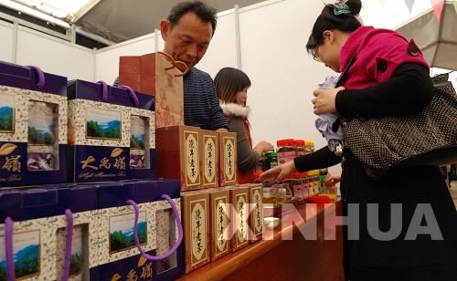 当日,在梧州市举行的第三届广西春茶节暨六堡茶博览交易会上,首次来到广西参展的台湾10家合作社和茶厂,带来了冻顶乌龙、梨山茶、阿里山茶、高山茶、杉林溪茶等茶叶品种,受到梧州市民青睐。新华社发(喻湘泉 摄)