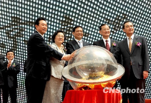 开街仪式上,中共中央政治局委员、北京市委书记刘淇,全国政协副主席、台盟中央主席林文漪,中台办、国台办主任王毅,连战夫妇、台湾雾峰林家董事长林芳英等台湾各界人士到场祝贺。(记者 路梅)