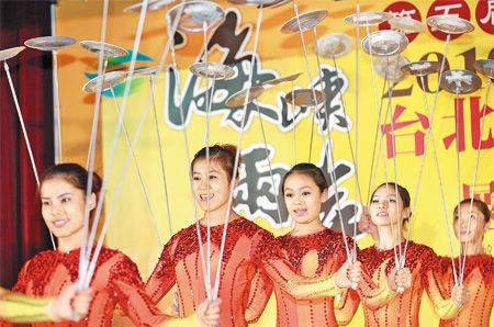第5届海峡两岸台北旅展今年扩大举行,将提前于8月12日至16日在台北世贸一馆展出,来自哈尔滨的冰上特技团,昨天在展前记者会中表演杂耍,赢得热烈掌声。图片来源:台湾《中国时报》