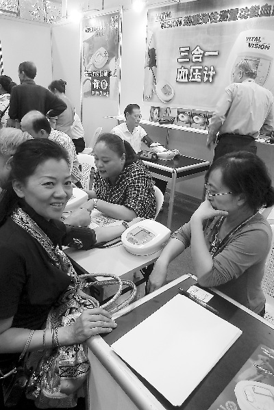 另外,医疗器械方面台湾得康医疗器材股份有限公司生产带来的周边血管检测仪不但可以测量血压,还可以同时测量出动脉硬化指数,一台售价500元,现场抢购者颇多(左图)。