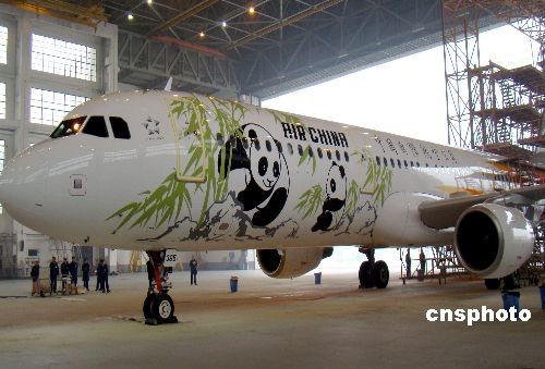 资料图:第二架“秀美四川”号空客A三二一彩绘飞机2008年12月25日在成都双流机场向公众亮相。该机将于本月二十七日正式投入航班运营,计划首班执飞成都—上海航班,今后将主要安排执飞成都—台北航线。 中新社发 王萌 摄