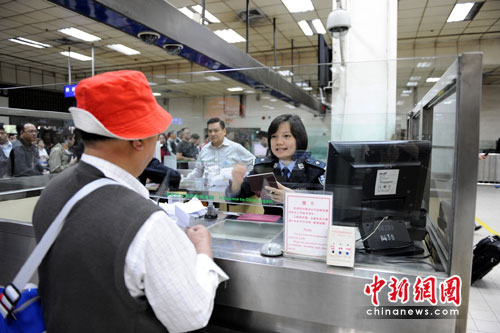 边检民警快捷为台胞办理查验手续。 作者:黄俊生