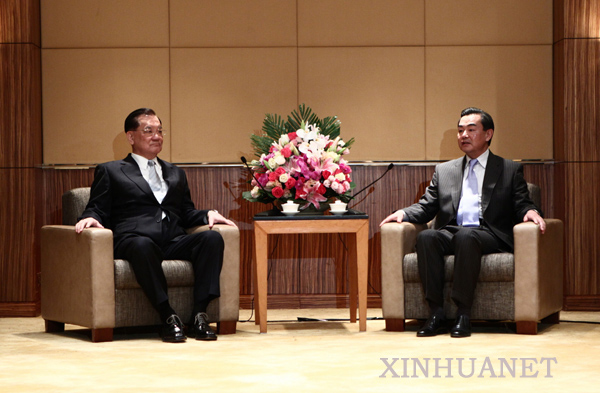 4月29日,中共中央台办、国务院台办主任王毅在上海会见前来出席上海世博会开幕式的中国国民党荣誉主席连战一行。新华社记者 邢广利 摄
