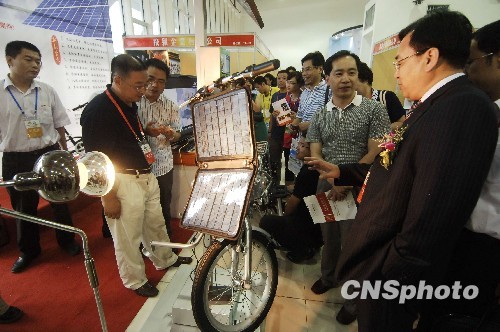 6月23日,一种利用太阳能发电驱动的“光动车”亮相首届海峡两岸电博会,受到众多客商青睐。当日,由海峡两岸携手举办的首届海峡两岸电机电器博览会在福建宁德市揭幕,250多家台湾企业的代表及来自美国、英国、法国、东南亚等电机主销区的采购商、经销商等逾6000名嘉宾参会。 中新社发 王东明 摄