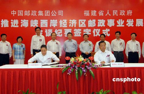中国邮政集团公司28日与福建省政府签订会谈纪要,双方将在对台通邮工作上合作,共同推进使用邮政民航飞机实现两岸空中直邮。