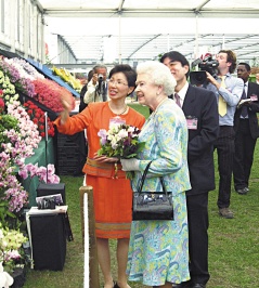 张小月也送上台湾最新培育的品种“幸运兰”,让女王相当惊喜,当场收下。女王堂妹亚历山德拉公主、英国议员唐纳荷、郝尔兹,也到台湾摊位前欣赏,盛赞台湾兰花美不胜收。
