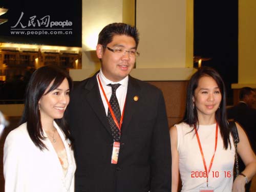 中国国民党荣誉主席连战的女儿连惠心(右)、儿子连胜文(中)及女友蔡依珊(左)也来参加两岸农业合作论坛。