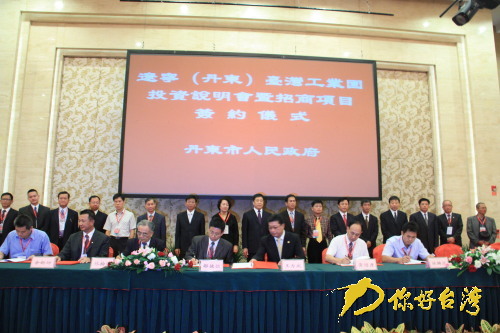 据了解,在辽宁台湾周期间签约入驻的企业,主要包括新型材料、污水处理、电子元器件、不锈钢产品等产业项目,参加今天签约的15家台企包括常德污水处理集团、鸿茂企业股份有限公司等。辽宁(丹东)台湾工业园规划8平方公里,园区以台资企业为主。工业园由台湾乡林集团负责整体开发建设和招商引资,园区将按照台湾文化和企业需求进行规划设计及建设。