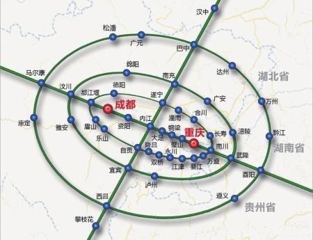 以成都和重庆为核心的区域辐射示意图