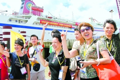 2009年9月16日,福建首批23名在校大学生从马尾港登船赴台湾高校学习。记者 林辉 摄