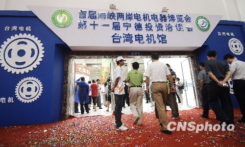 6月23日,一个专设的台湾电机馆亮相首届海峡两岸电博会。当日,由海峡两岸携手举办的首届海峡两岸电机电器博览会在福建宁德市揭幕,250多家台湾企业的代表及来自美国、英国、法国、东南亚等电机主销区的采购商、经销商等逾6000名嘉宾参会。 中新社发 王东明 摄