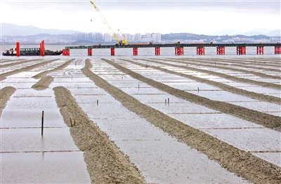 昨日,在泉州湾跨海大桥栈桥工地上,凛冽的海风阵阵吹过,穿着救生衣的施工人员正在栈桥上紧张地进行施工。据施工单位中铁大桥局泉州湾跨海大桥栈桥工程施工人员介绍,目前,泉州湾跨海大桥栈桥工程已完成70%工程量,将于月底全面建成。该栈桥建成后,将作为泉州湾跨海大桥的施工便道。(记者 颜华杰 通讯员 刘兵)