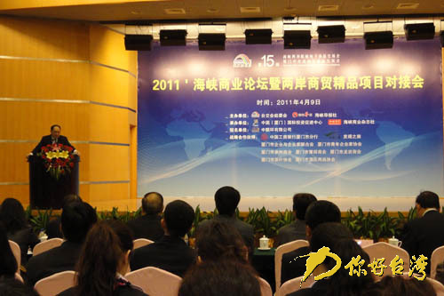 你好台湾网厦门4月9日消息(记者 盛志耘)今天(9日)上午,正在厦门举办的第十五届台交会组委会举办了“2011’海峡商业论坛暨两岸商贸精品项目对接会”,这一务实性论坛吸引了两岸300多名企业家同聚一堂,共商合作。