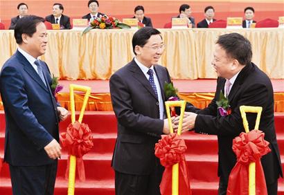 昨天的扩建项目动工典礼上,省委常委、厦门市委书记于伟国,市委副书记、市长刘赐贵等领导,都出现在现场,为扩建项目动工培土。在动工仪式之前,于伟国、刘赐贵一行,还详细听取了宸鸿科技近年来的发展情况介绍以及未来规划等。