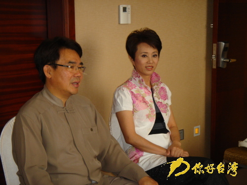 21日下午,台湾著名歌仔戏团——明华园戏剧总团团长陈胜福和当家小生孙翠凤亮相厦门,为10月29日、30日在厦举办的海峡两岸民间艺术节开幕演出《蓬莱大仙》宣传造势。