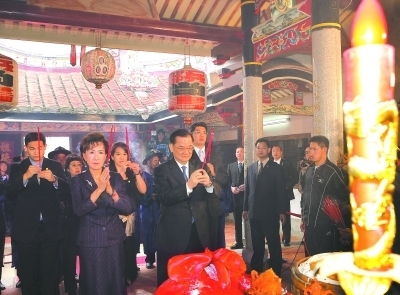 2006年4月19日,连战携夫人、儿子、女儿等家人来到龙海马崎村祭祖。(郑杰 摄)