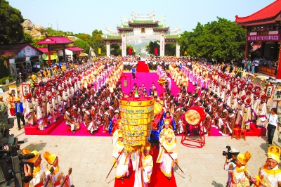 首届海峡论坛首场民间交流活动在湄洲岛举行,两岸妈祖信众在湄洲祖庙隆重举行祭祀妈祖祈福大典。陈建平 摄