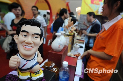 5月18日,贴有马英九、萧万长肖像的台湾白酒亮相第十二届海交会。当日,由国台办、中国贸促会、海关总署、国家质检总局和福建省政府共同主办的第十二届海峡两岸经贸交易会、第七届中国福建商品交易会在新落成的福州海峡国际会展中心开幕,近万名海内外客商赴会。 中新社发 王东明 摄