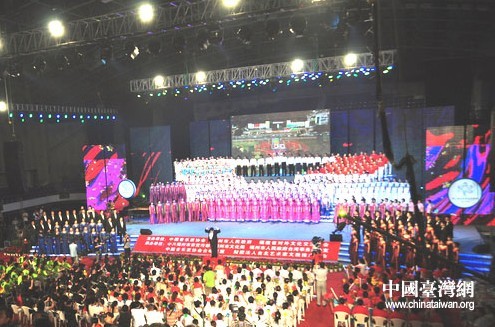 中国台湾网6月22日福州消息 21日晚,由中国音乐家协会、福州市政府和福建省对外文化交流协会联合主办的“海峡论坛·第三届海峡两岸合唱节”在福州市体育馆举办了闭幕式暨颁奖音乐会。本届合唱节共有来自海峡两岸的19支合唱队参加表演,参赛人数逾千人。他们在4天的时间里,以歌为媒、以歌传情,充分享受了艺术的盛宴,分享了共同的欢乐。