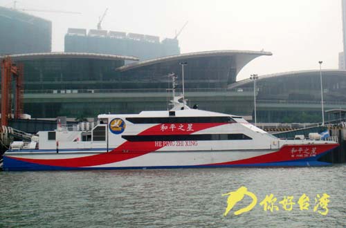 “和平之星”轮长49.92米,宽度12.4米,总吨548吨,全铝合金建造,采用四机喷水推进,设计满载航速38节,已经于近日完成了试航。正式投入运营后一天两班,分别为下午2:30从厦门开往金门,下午4:30从金门开往厦门。