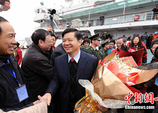 2月16日,农历正月十四下午,出席第九届“两马同春闹元宵”系列活动的马祖县长杨绥生、马祖知名人士曹尔忠一行,乘坐“台马轮”经“两马”航线抵达福州港马尾客运站,受到当地热烈欢迎。
