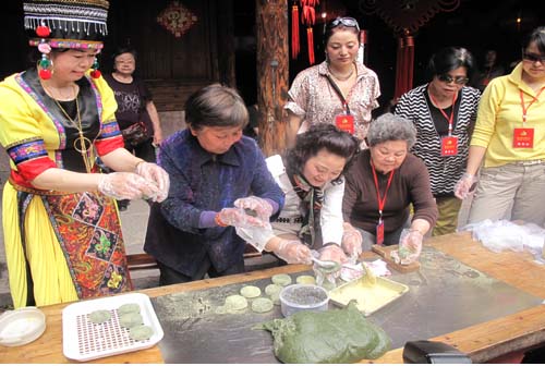 两岸“十佳婆媳”代表在滕头村现场制作青团。