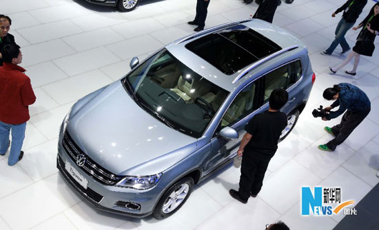 4月24日,记者在2010(第十一届)北京国际汽车展览会上拍摄上海大众的SUV汽车——途观(Tiguan)。新华社记者庞兴雷摄