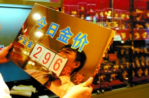 国际金价创出历史新高,零售市场已经无法承受黄金价格上涨的压力,京城金价终于发力上冲。北京市场黄金价格在维持了五个月后,昨天,菜百、工美、国华等黄金卖场纷纷调高黄金价格——足金每克涨19元,千足金每克涨10元。千足金最高已升至298元/克,逼近300“整数”关口。据悉,这是今年北京市场首次调高金价,这个价格也创下了历史纪录。