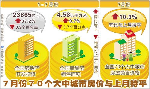 今天上午,国家统计局发布的全国房地产运行情况显示:7月份,全国70个大中城市房屋销售价格同比上涨10.3%,其中,北京市新建住房价格同比上涨20.1%,涨幅居全国之首。环比上涨0.3%。