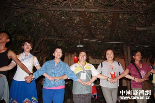 中国台湾网8月19日恩施消息 19日下午,在参观了恩施大峡谷和云龙河地缝之后,由台湾“中华海峡两岸台湾原住民暨少数民族交流协会”理事长简东明率领的台湾少数民族参访团体验了独具土家族特色的摔碗酒。台湾少数民族代表与土家族青年都表演了各自的民族歌舞,最后,在场所有嘉宾手牵手围绕篝火唱起歌跳起舞,在这片欢乐的海洋里为台湾少数民族参访团对恩施的参访画上了完美句号。