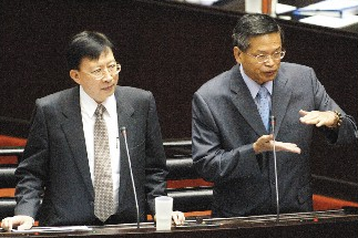 全球信用紧缩恐惧风暴扩大,台“行政院长”刘兆玄(左)7日上午强力信心喊话,宣示所有岛內银行存款戶的存款,都由政府保障。(图片来源:台湾《联合晚报》)