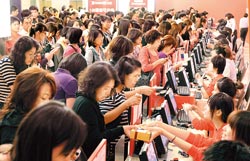 图为台中中港店内,消费者购物后再去兑换赠品人潮拥挤。图片来源:台湾中国时报