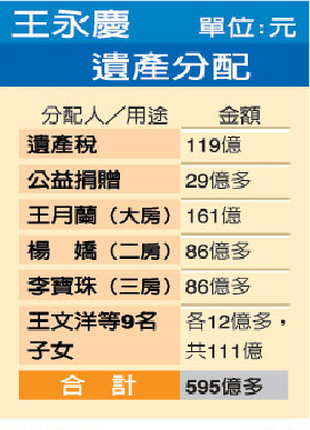 王永庆遗产分配 图片来源:台湾《联合报》