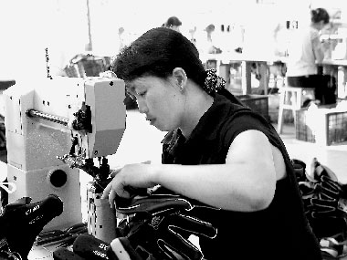 宏国(龙岩)运动用品有限公司员工正在赶制出口欧美的棒球手套。