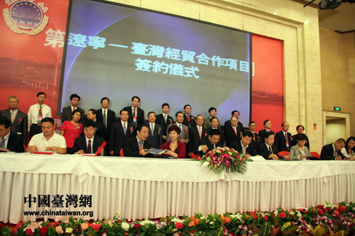 在开幕式后,16个经贸合作项目举行了集体签约仪式。(中国台湾网 马迪 摄)