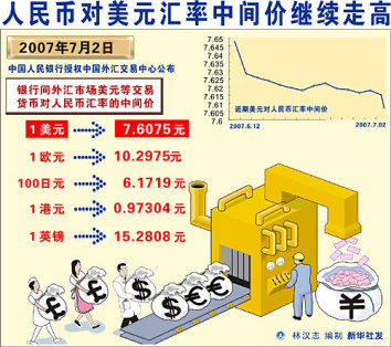 来自中国外汇交易中心的数据显示,22日人民币对美元汇率中间价报7.4119元,23日人民币对美元汇率中间价突破7.4整数关口,7.3992再创汇改以来新高,单日升值幅度高达127个基点。这也是进入11月以来,人民币对美元汇率中间价第六次创出新高。