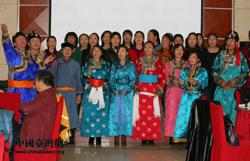 接下来的联欢晚会上,赵先生认真地看着每一个节目。蒙族老师个个能歌善舞,那散发出来的草原人民的豁达、爽朗的性格让赵先生也按耐不住,主动献唱歌曲《心恋》。“我想偷偷望呀望一望她,假装欣赏欣赏一瓶花;只能偷偷看呀看一看她,就像这要浏览一幅画……”晚会末了,赵先生和每一位学员打招呼,和每一位学员合影留念。就在赶赴通辽的途中,他还到了北京知名眼科医院就诊。因为拍戏过度劳累,眼睛对光变得特别敏感,尤其是闪光灯。于是我们告知学员,尽量不用闪光灯照相,但学员总有疏忽的时候,赵先生都微笑着接受,那是一种发自内心的笑,尽管最后他眼睛已经泛红。曾见过体育明星扔给球迷们的不屑眼神;也曾听说演艺大腕拒绝给歌迷们签名。演艺场是个容易教人浮躁、迷乱的地方,身为影视明星的赵先生却能够保持一颗平常心,保持随和、谦恭、率真的品质,我想这得益于他深厚的文化底蕴。据说他在闲暇时间,往往是足不出户,闷头读书,文史经哲,涉猎广泛。