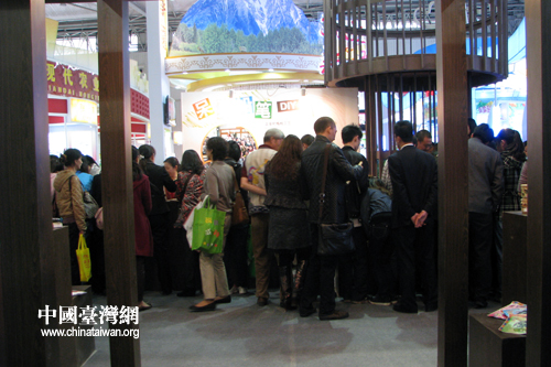 台湾参展商在农交会期间每天举办铅笔DIY制作活动,以废弃的梅枝为材料,引导绿色环保理念。图为参观者大排长龙,纷纷一享亲手制作铅笔的乐趣。(中国台湾网 马迪 摄)