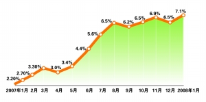 在此经济环境下,人们已经习惯了低物价时代,对物价上涨明显感到不适。而2008年春节前后我国南方地区遭受的冰冻雨雪灾害一定程度上加剧了CPI的高企,再度引发公众对雪灾可能导致新一轮物价上涨的担忧。
