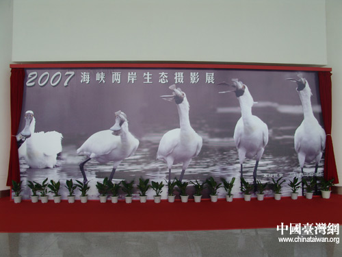 记者在现场看到,包括台湾黑脸琵鹭、台湾紫啸鸫、白额燕鸥、栗喉蜂虎、鸬鹚等在内的大陆及台湾珍贵鸟类都有图片展出,现场的一位工作人员还特意地向记者介绍了一尊鸬鹚雕像。这位工作人员表示,这种鸬鹚白天在厦门,但很奇怪,一到晚上就大部分飞到金门过夜,白天再飞回来,至今也不知道原因。不过,他笑着说,或许是因为厦门晚上太亮了吧。