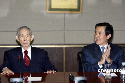 资料图:4月7日,马英九与萧万长傍晚拜会台塑集团创办人王永庆(左),就外界瞩目聚焦的两岸三通、大陆投资松绑等议题进行交谈。这是马英九选后“请益之旅”首度公开拜会企业界。图为台塑集团创办人王永庆。 中新社发 杜洋 摄