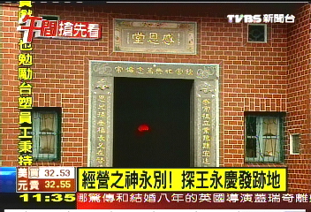 台湾“经营之神”王永庆今天去世。台湾TVBS报道说,白手起家的他,当年就是从新店直潭发迹,祖厝“感恩堂”还保留着当年三合院的格局,尽管不是出身大户人家,不过外头有一道龙形围墙,王永庆日后确实也像这龙一样事业飞黄腾达。