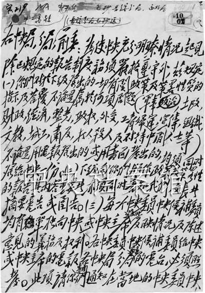 图为1948年3月25日毛泽东起草的中共中央关于建立报告制度的补充指示(局部)。