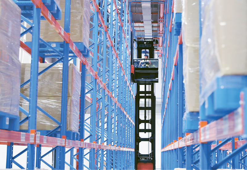 2020年6月5日,上海虹桥进口商品展示交易中心和一街之隔的上海虹桥商务区保税物流中心保税仓库,共同开启了一场线上直播活动,介绍保税展示交易联动模式,推介进口商品。从4月起,我国货物贸易出口连续增长;自6月起,进出口增速双双“转正”。图为工作人员驾驶叉车在保税仓库进行作业演示。 新华社记者 方喆/摄