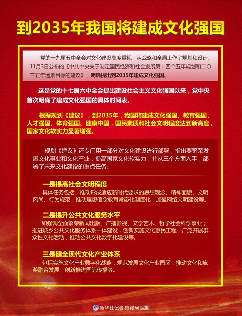 在“两个一百年”历史交汇点上,《建议》强调“提高社会文明程度”,深刻把握了全面建设社会主义现代化国家的文化导向和文化功能,指明了文化强国的文明水准和社会基础,对建设社会主义文化强国,开启全面建设社会主义现代化国家新征程具有重大意义。