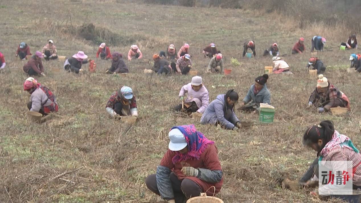 产业化的发展路子不仅让城镇居民就近就业,也让地处山区的村民们在世代劳作的土地里成了工人,企业加工的半夏就来自这片基地。温度接近零度的乌蒙山区,本该是农闲时节,但在赫章县铁匠苗族乡的中药材种植基地里却有着少见的繁忙景象,70多位工人正拿着钉耙提着桶采收半夏。