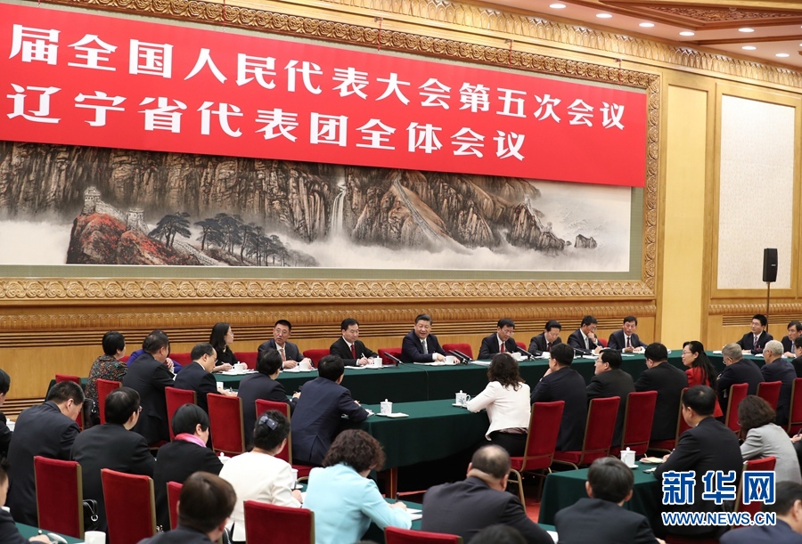 3月7日,中共中央总书记、国家主席、中央军委主席习近平参加十二届全国人大五次会议辽宁代表团的审议。新华社记者 谢环驰 摄