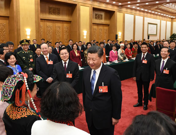 3月8日,中共中央总书记、国家主席、中央军委主席习近平参加十二届全国人大五次会议四川代表团的审议。新华社记者 李学仁摄