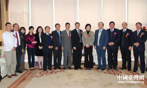 安徽省副省长花建慧亲切会见台湾复兴航空公司董事长林明昇一行后合影(图片来源:安徽省台办)
